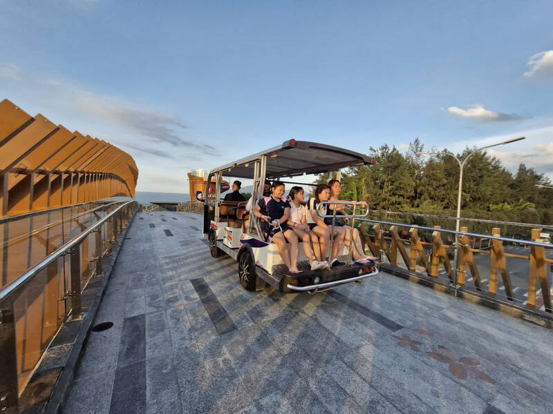 Experience the pedestrian bridge winding like waves, watching the whole sea of Da Nang