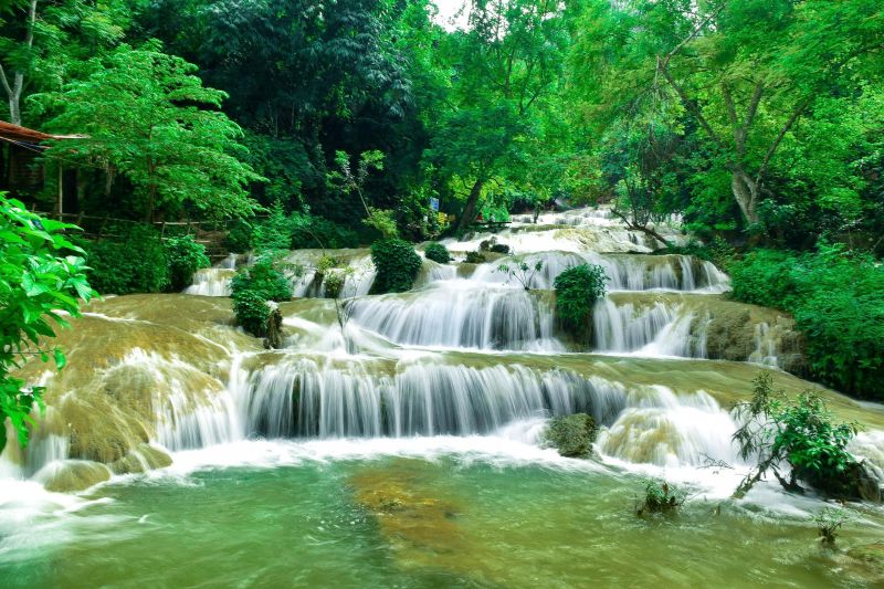 Thanh Hoa - May Waterfall is considered one of the most beautiful waterfalls in Thanh Hoa, with 9 stacked water levels creating a surprisingly beautiful scene.