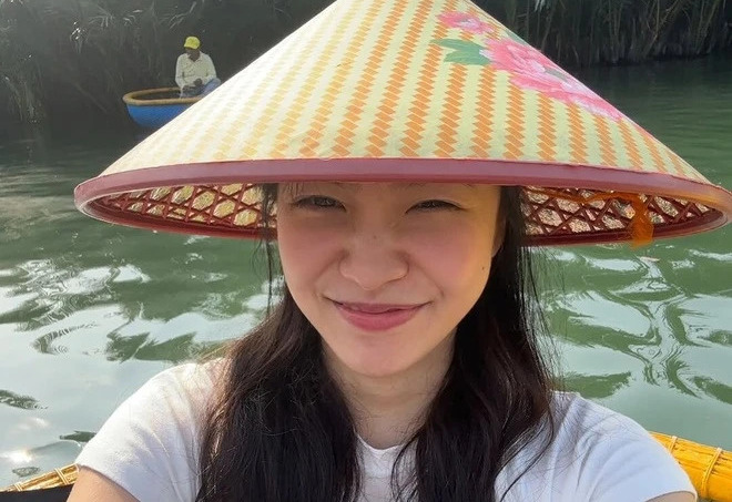 Yeri (Red Velvet) shared a photo wearing a conical hat, visiting the main hall church when traveling to Da Nang.