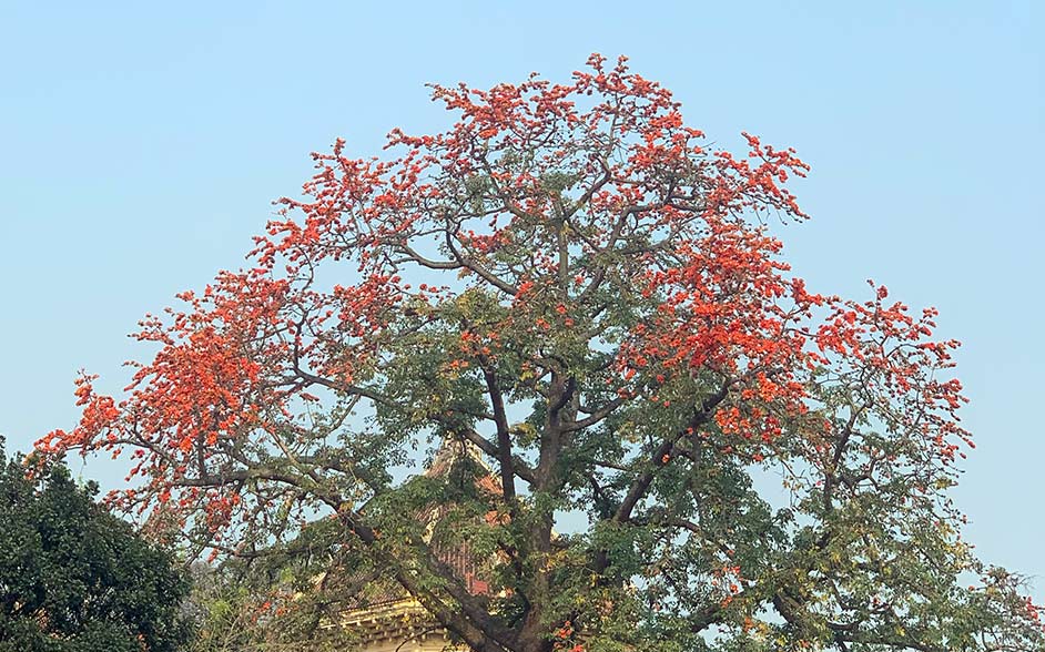 Thai Binh - Go go tree in Thai Thinh commune (Thai Thuy district) blooms, dyed a corner of the sky red, attracting many people to admire and take photos.
