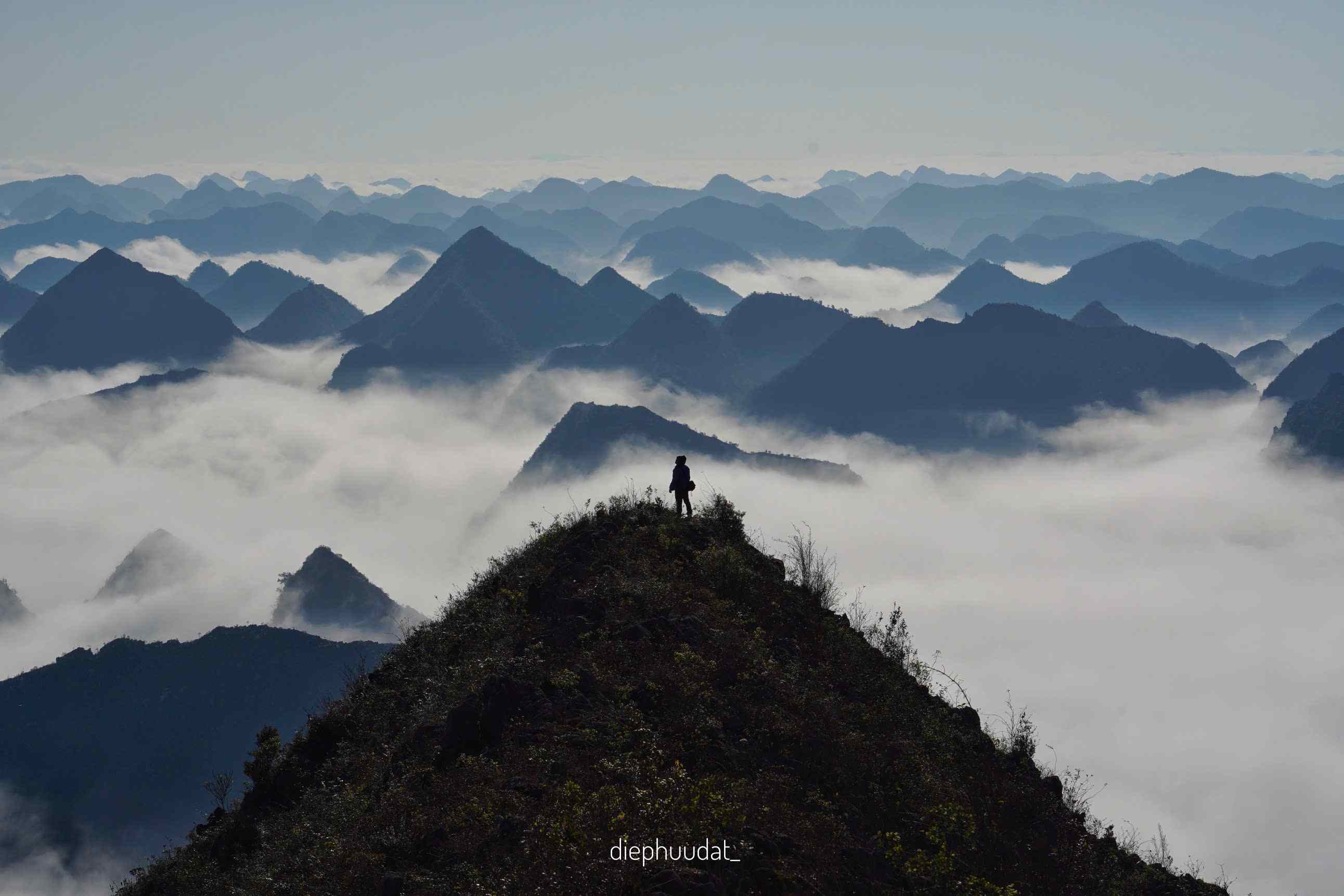 Ha Giang - At 4:30 am, while digging on the mountain pass and the fog, Dat finally saw himself reflecting in the sea of floating clouds in Dong Van.