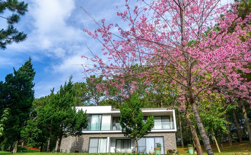 Nằm giữa thiên nhiên xanh mướt của bán đảo Sơn Trà, những căn villa màu trắng của resort này được ví như những viên ngọc trai đang tựa vào núi rừng và hướng ra vịnh biển.