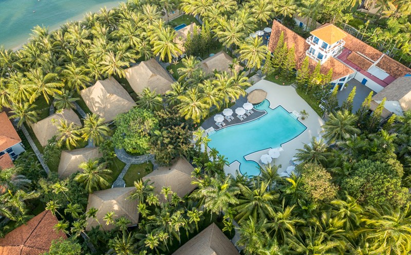 Khuôn viên được bao phủ bởi những rặng dừa, vườn cây xanh mát khiến du khách luôn cảm thấy thư giãn và hòa mình vào thiên nhiên. Ngoài ra, khu nghỉ dưỡng còn cung cấp nhiều tiện ích đẳng cấp khác như bãi biển riêng, hồ bơi ngoài trời rộng 1.600m2, phòng tập gym, massage, quán bar, xe đưa đón sân bay...