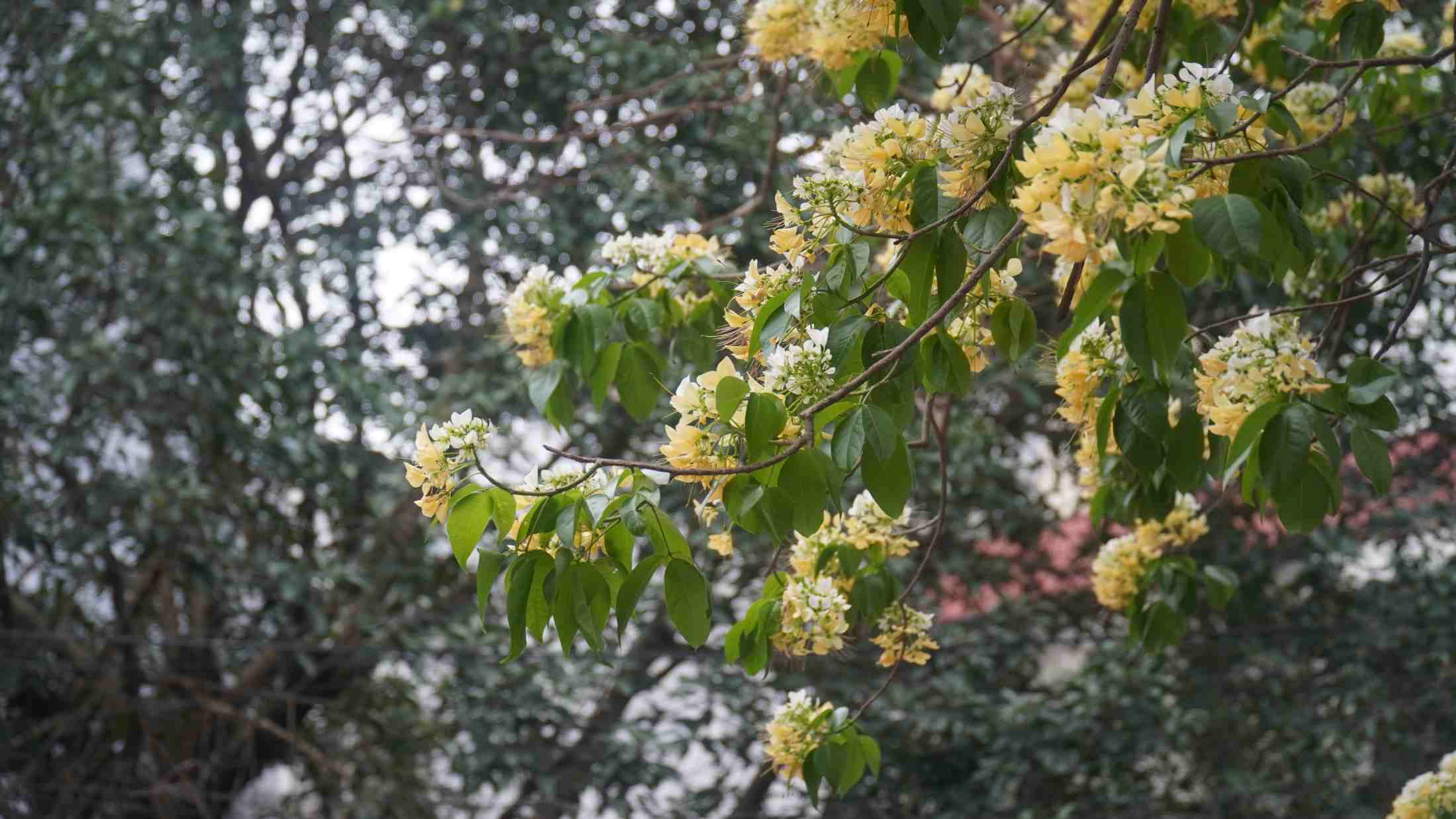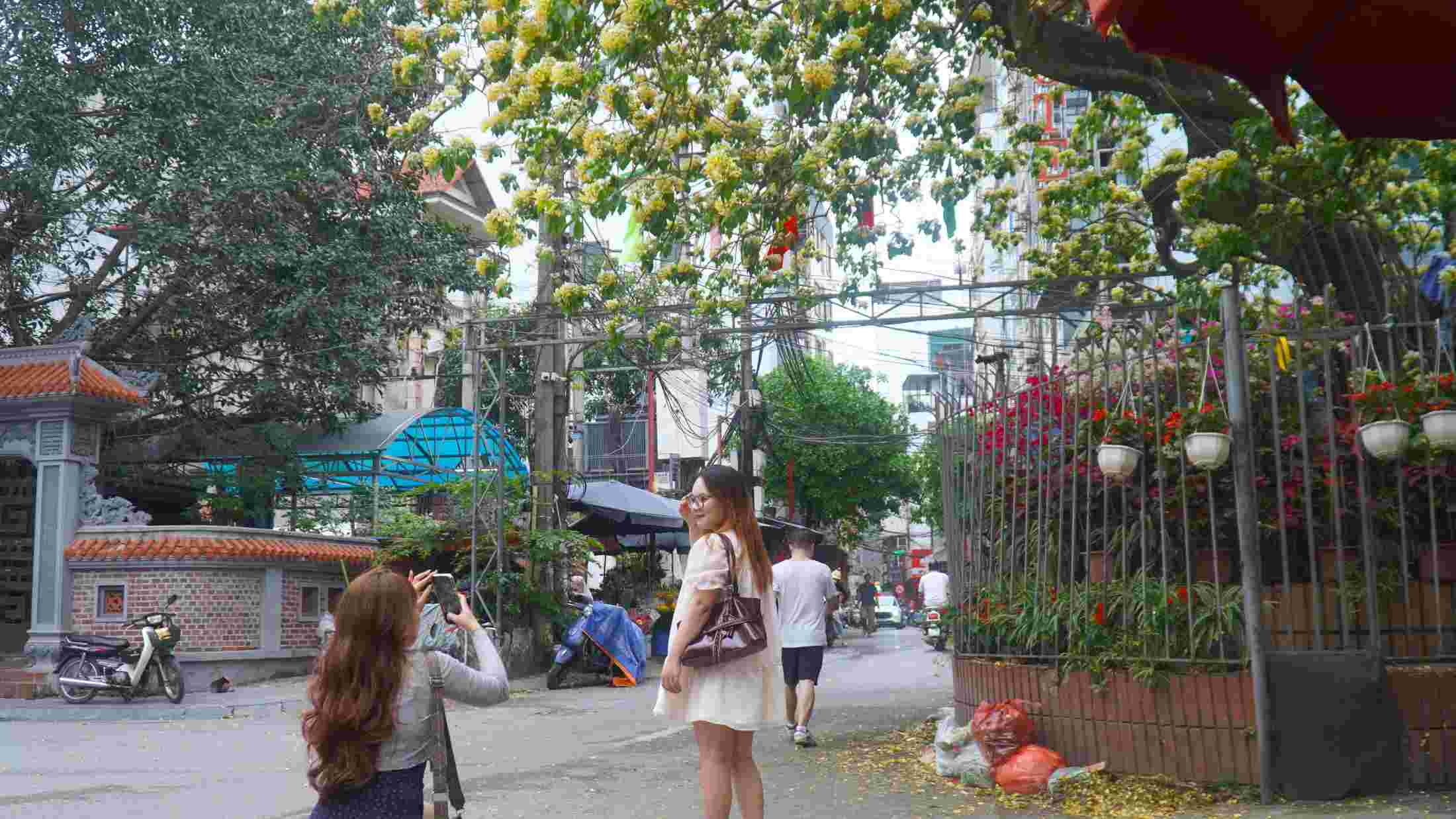 Hanoi - A 300-year-old vermicelli flower tree blooms golden yellow in a corner of the sky, attracting a large number of people to capture a special moment.