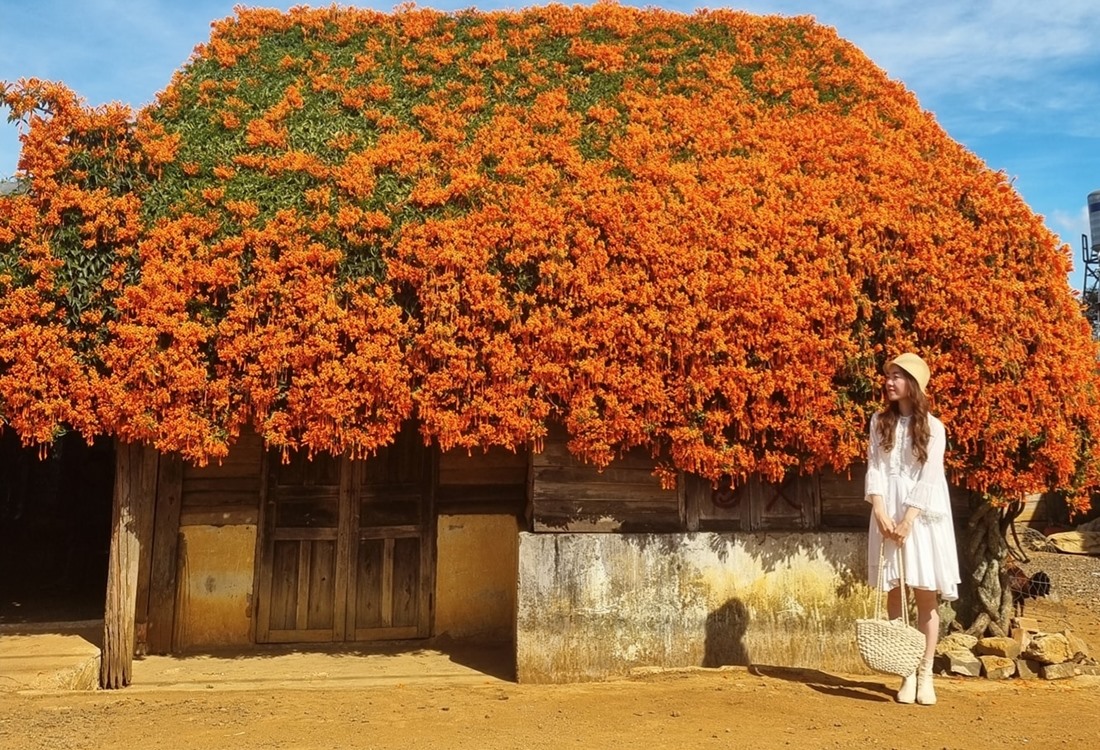 Ngôi nhà cổ tích phủ đầy hoa xác pháo nằm ở ngoại ô thành phố Bảo Lộc (Lâm Đồng), gần nhà thờ B'Đơ thu hút du khách tới check-in, khám phá.
