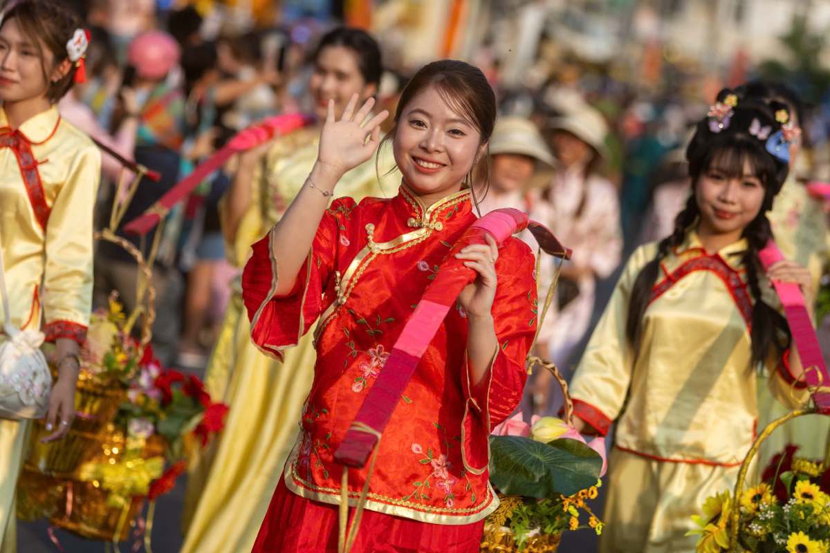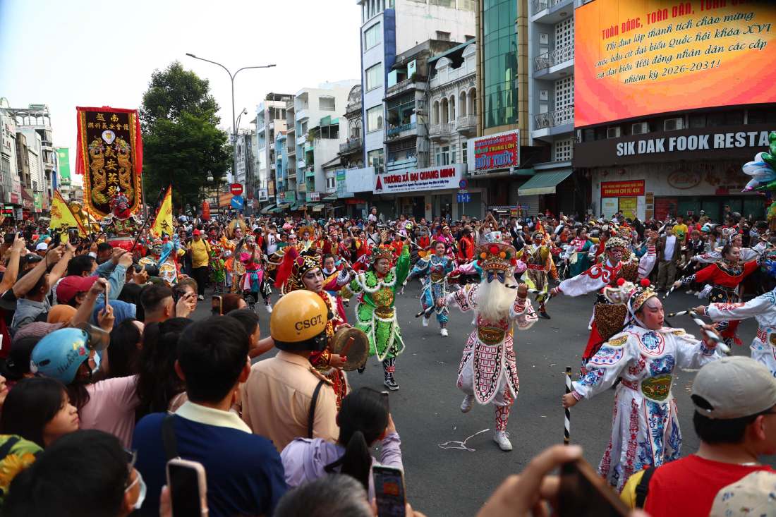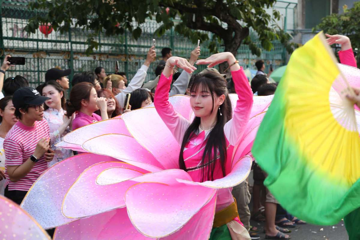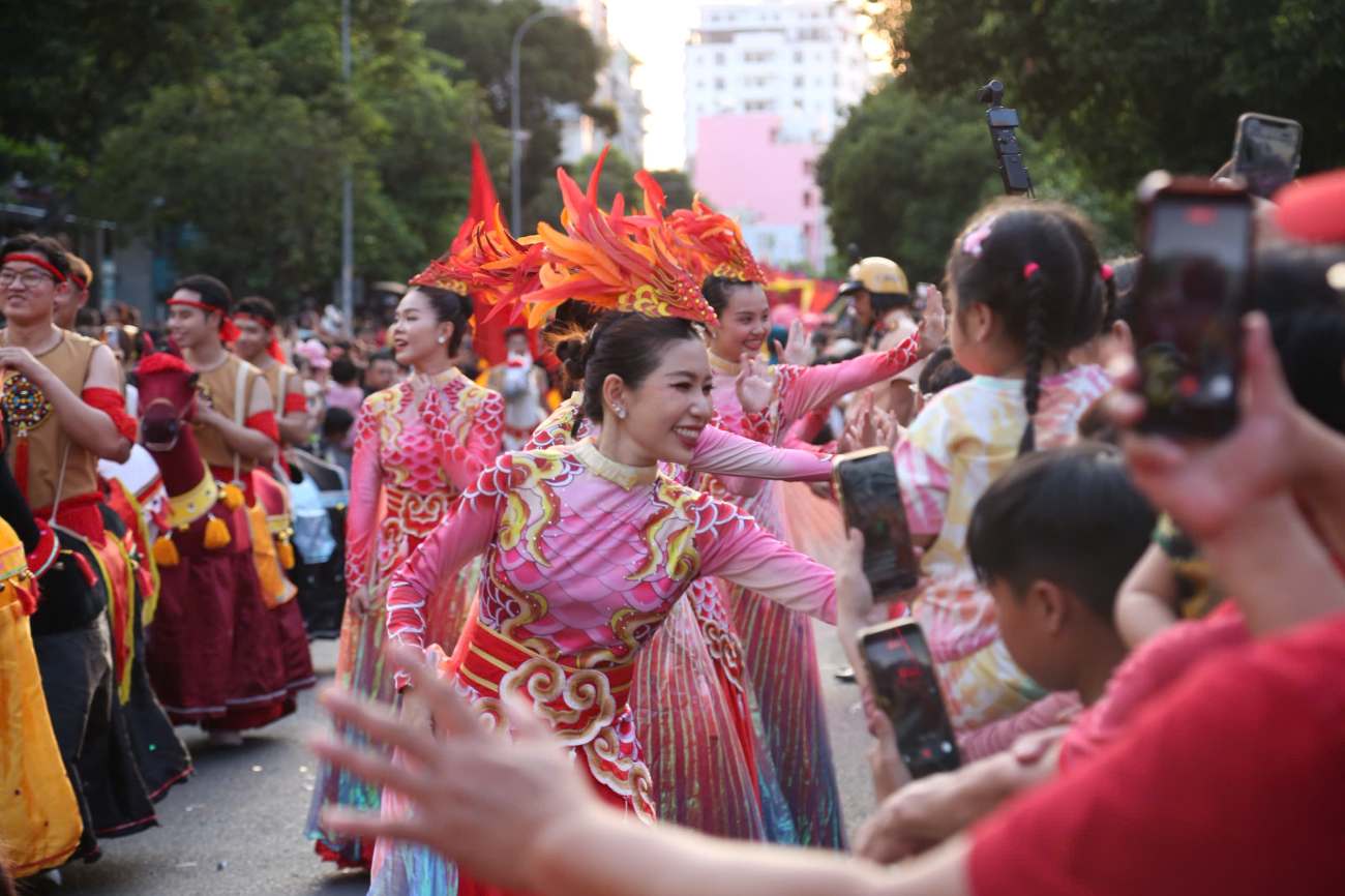 Ho Chi Minh City - Thousands of people and tourists watch the lion and dragon parade, immersing themselves in the atmosphere of the Lunar New Year festival at the Nguyen Tieu festival.