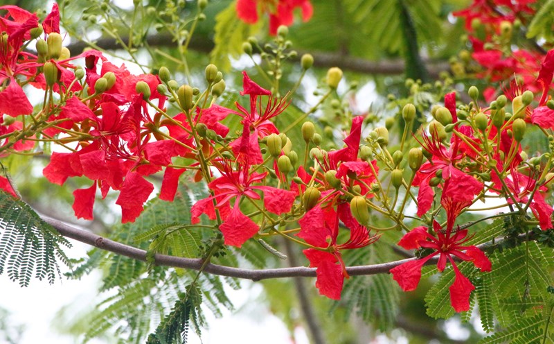 Dậy từ rất sớm để cùng nhóm bạn đi check-in dưới những hàng phượng tại công viên ở trung tâm TP. Huế, bạn Nguyễn Thị Phương Ngàn (21 tuổi) chia sẻ: “Mấy hôm trước bắt gặp hoa phượng đang bắt đầu nở đẹp, nay mình và nhóm bạn đại học đã hẹn nhau đến đây để chụp hình. Mặc dù hiện tại mình đã là sinh viên năm 2, nhưng khi thấy phượng nở mình rất nhớ những ngày tháng còn học sinh, cảm xúc vẫn rưng rưng và mình đã có rất nhiều bức hình đẹp với hàng phượng này”.