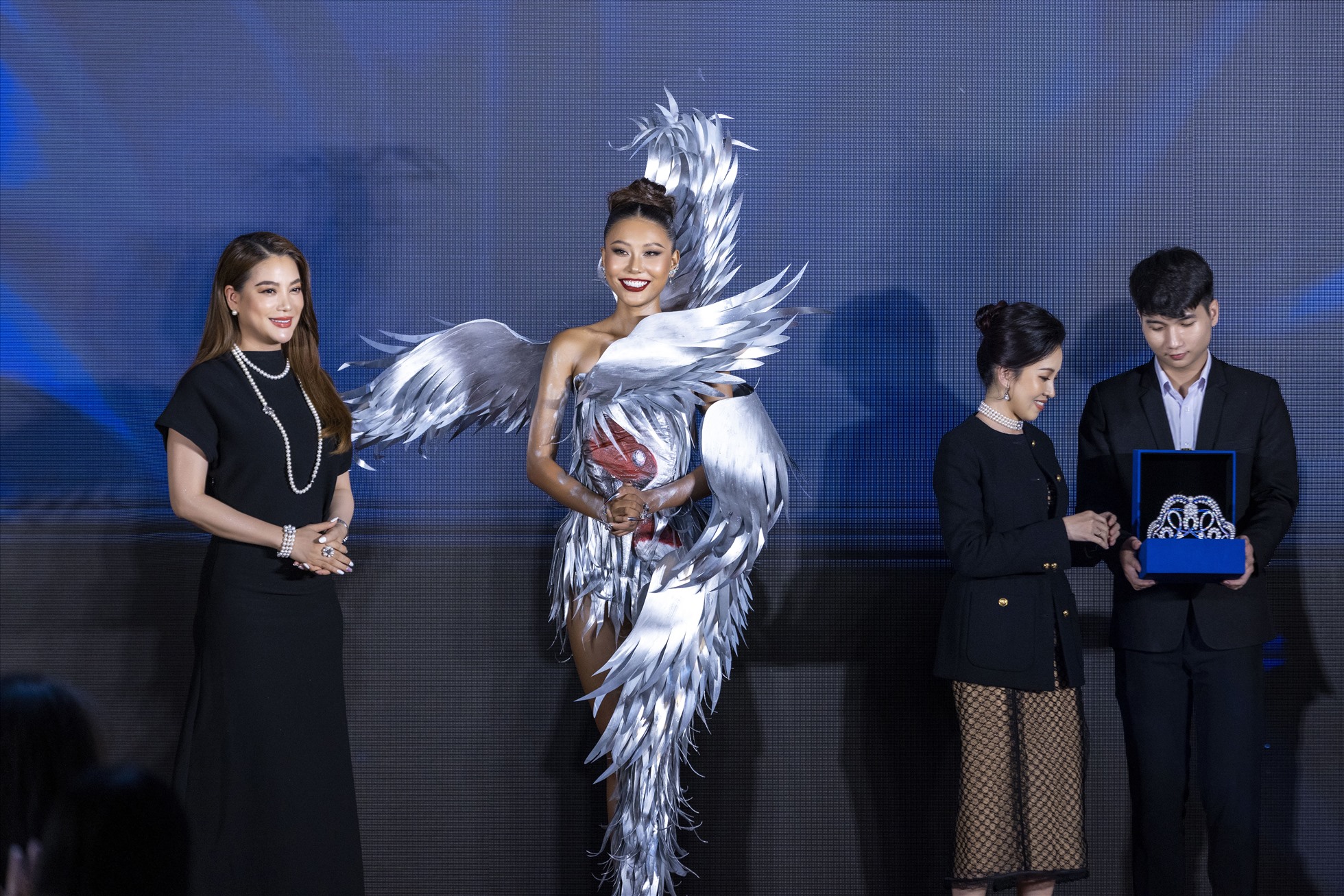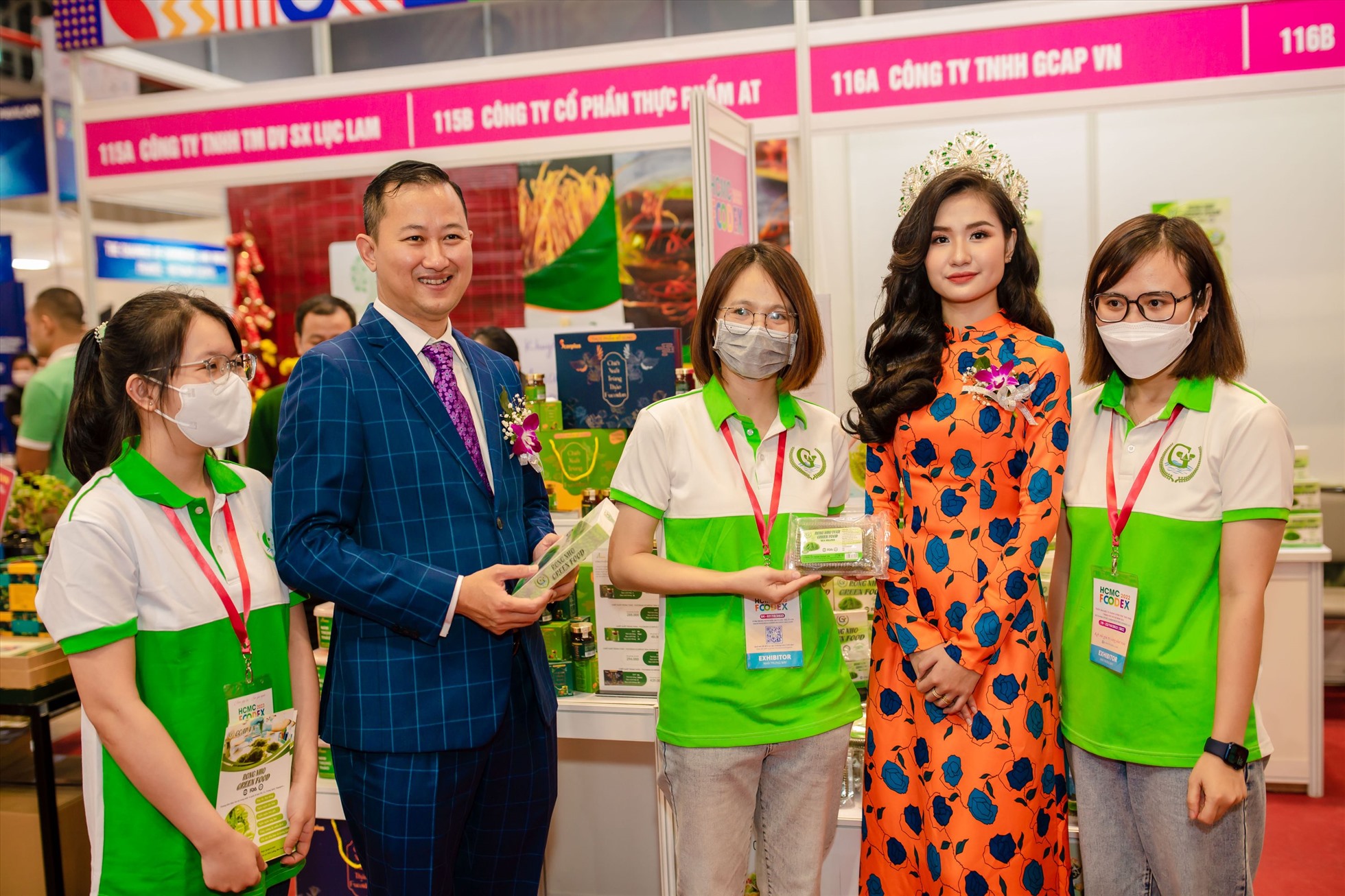 Người đẹp đăng quang Hoa hậu Môi trường Việt Nam 2022 xuất hiện tại Triển lãm Quốc tế ngành Lương thực Thực phẩm TP.HCM với mong muốn quảng bá ẩm thực Việt Nam.