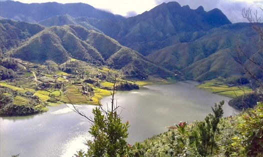 Từ trên cao nhìn xuống những rặng anh đào tựa như dải lụa hồng uốn cong mềm mại, vắt ngang giữa những luống chè xanh ngắt, tạo nên một bức vẽ thiên nhiên khiến du khách năm nào cũng chỉ đợi đến mùa này, để được tới đây ngắm anh đào và phiêu cùng mây núi.