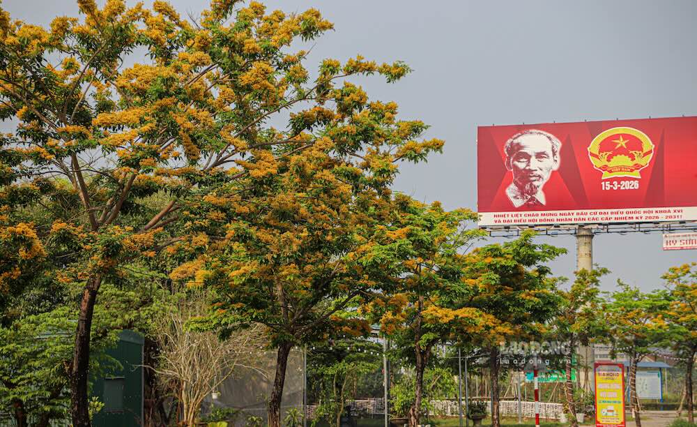 Hanoi - A 300-year-old vermicelli flower tree blooms golden yellow in a corner of the sky, attracting a large number of people to capture a special moment.