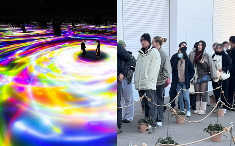 Japan - Runner-up Phuong Nhi and her husband Minh Hoang were caught lining up to buy tickets at TeamLab Planets Tokyo, the most popular museum in the capital of the land of cherry blossoms.