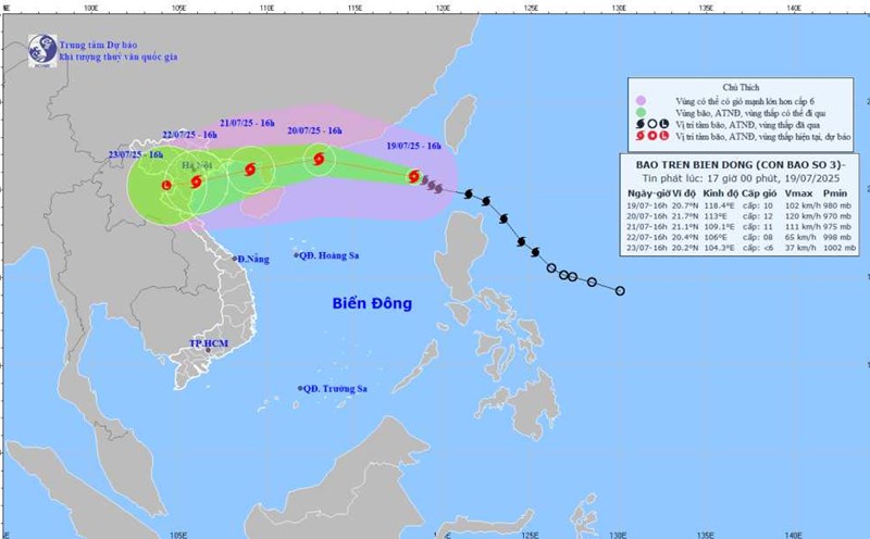 Weather forecast for tomorrow, July 19, storm No. 3 Wipha enters the East Sea and causes first impacts.