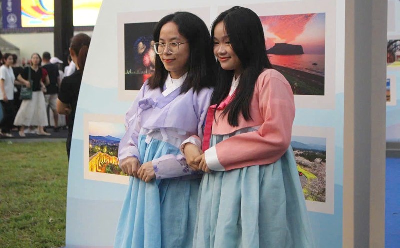 Many Vietnamese guests dressed up as Hanbok to take photos and wait in line to paint Henna at the first World Cultural Festival.