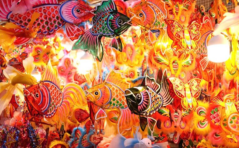 Hang Ma Street is sparkling with lights during the Mid-Autumn Festival