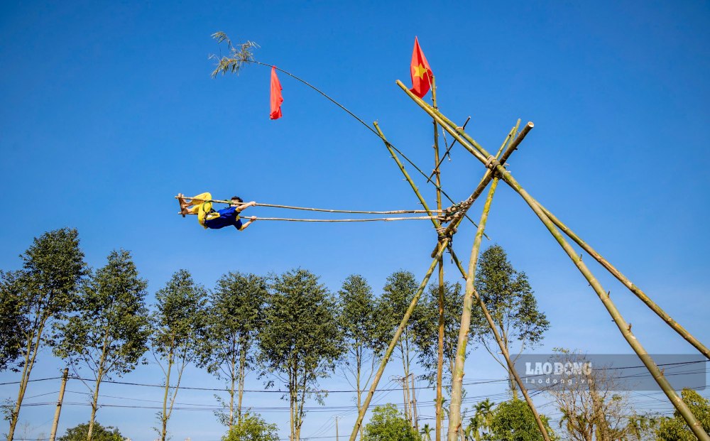 HUE - Young people from Gia Vien village (Phong Hien ward, Phong Dien town, Hue city) performed their superb pole-swinging skills, leaving the audience in awe.