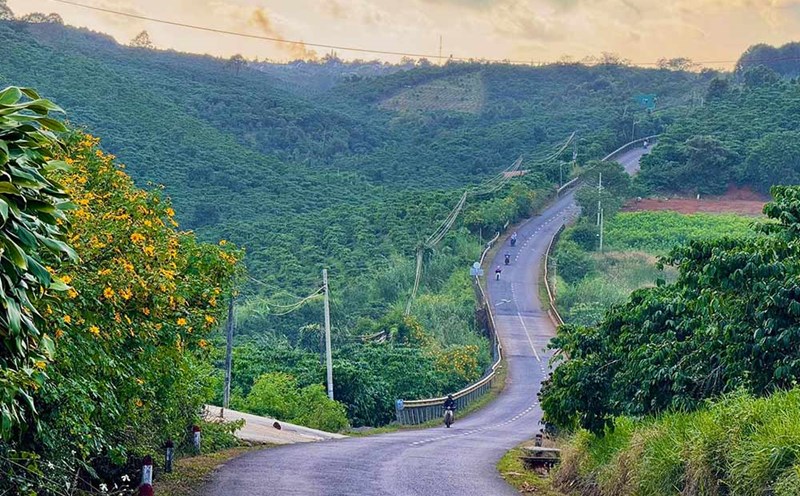 Lam Dong - Driving on DT725 road while admiring the lush green Central Highlands nature on both sides of the road is an interesting experience, especially during wild sunflower season.