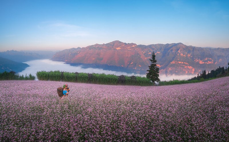 Lao Cai - Buckwheat flowers bloom, coloring a large hill area in the white plateau of Bac Ha.