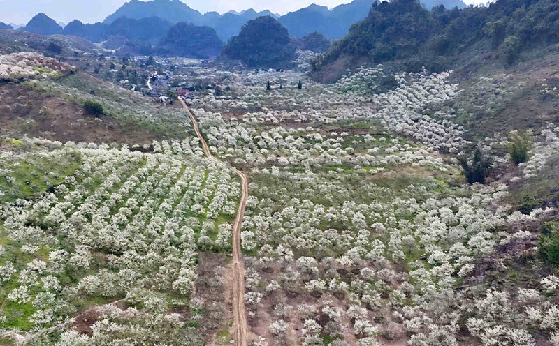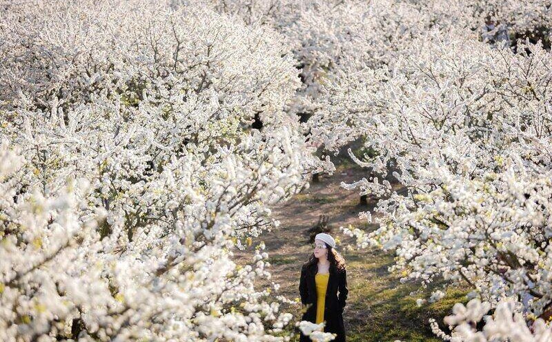 Son La - throughout the valleys in Moc Chau and Van Ho are on the most beautiful days when plum blossoms bloom white as snow on the tree, attracting tens of thousands of tourists.