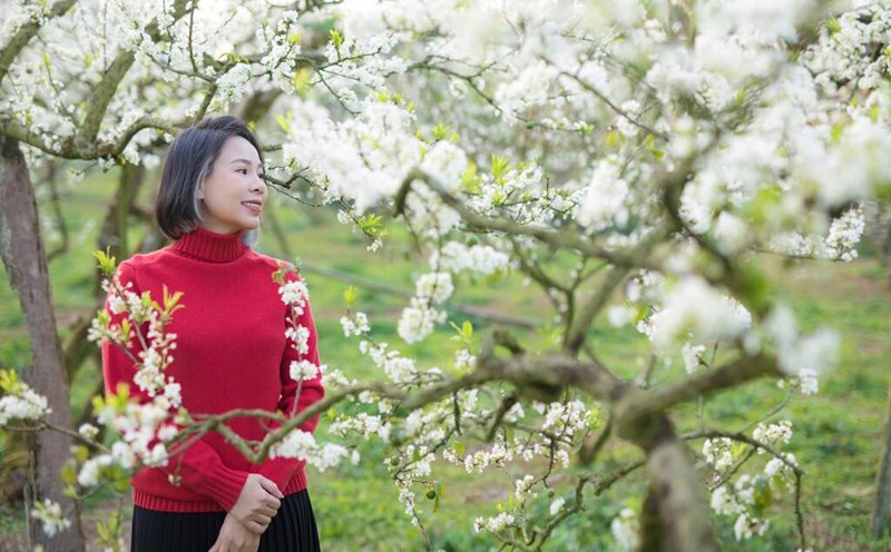 Son La - After 10 consecutive years of hunting for Moc Chau plum blossoms, Ms. Vu Thanh Hoa (43 years old, Hanoi) is still surprised by the beauty of this year's flower season.