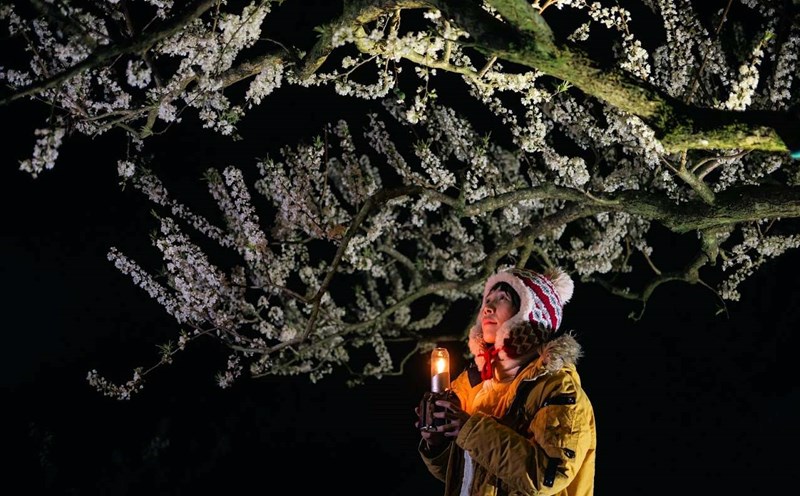 Son La - A group of friends from Hanoi traveled to Moc Chau right on the foggiest and coldest days of early February to experience plum blossoms blooming at night.