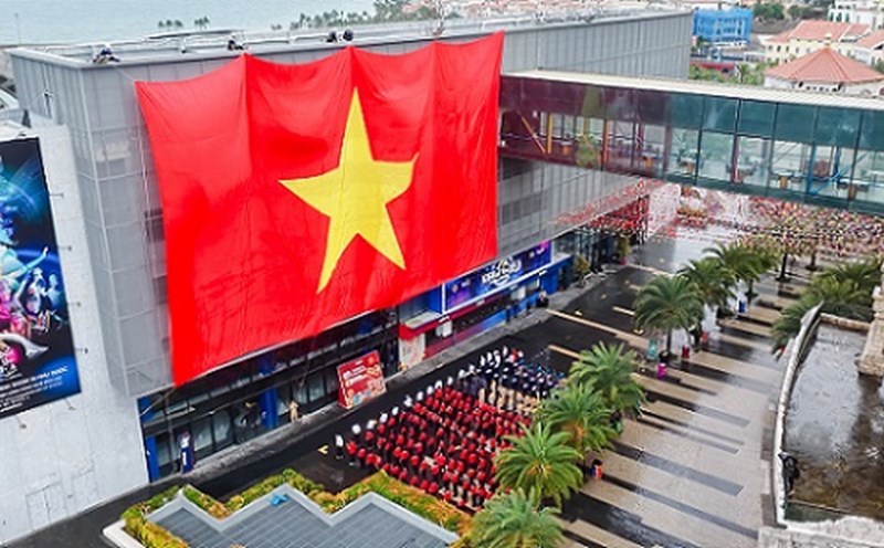 The southern island of Phu Quoc during the National Day holiday on September 2 is becoming a tourist destination with a radiant atmosphere of flags and flowers in Hoang Hon Town with a grand scale of more than 500m2, the eye-catching show "The kiss of the Sea" with the bustling nightly fireworks and the Vui Phat night market.