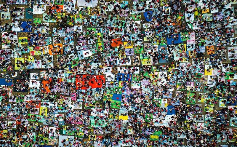 The sea of people at the foot of Ba Den mountain is as dense as an abstract painting
