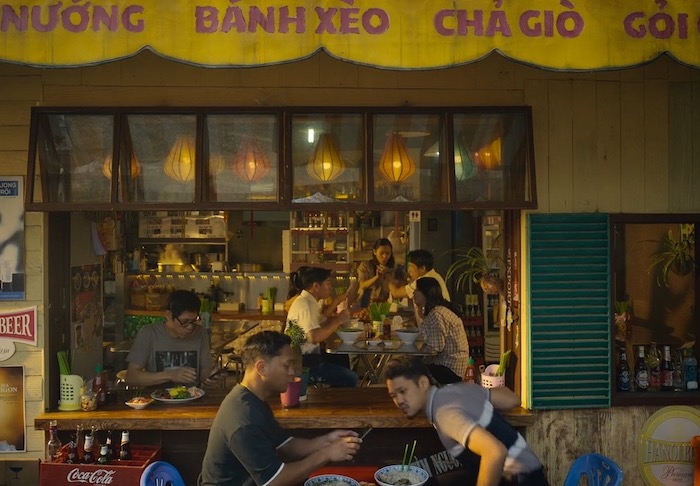 Images of a Vietnamese restaurant with a menu of banh xeo, salad rolls attract attention in a Korean movie scene Can This Love Be Translated? (Can you translate this love?).