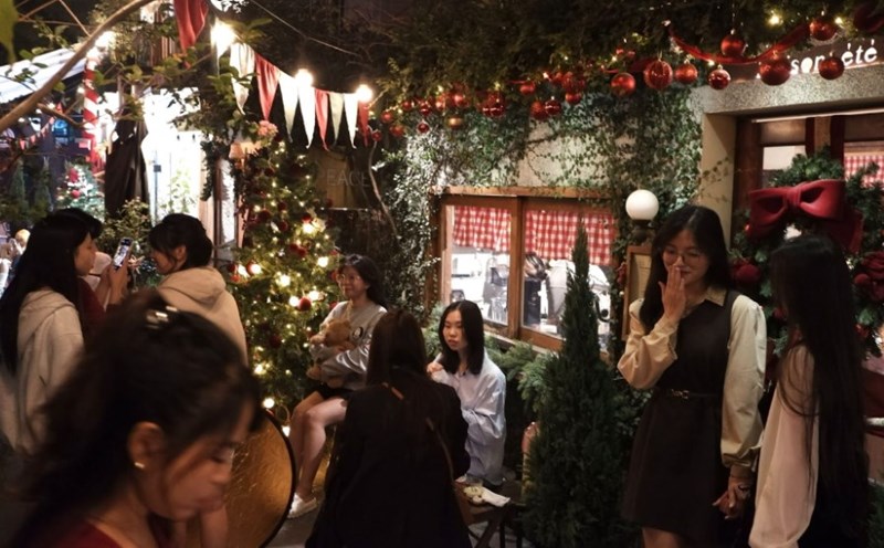 Hai Duong - Before Christmas, many young people in Hai Duong took the opportunity to take photos at a cafe decorated with festive colors.