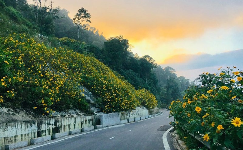 Lam Dong - Driving on DT725 road while admiring the lush green Central Highlands nature on both sides of the road is an interesting experience, especially during wild sunflower season.