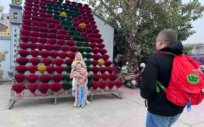 Hanoi - Every day, Quang Phu Cau incense village welcomes hundreds of visitors to visit and take photos.