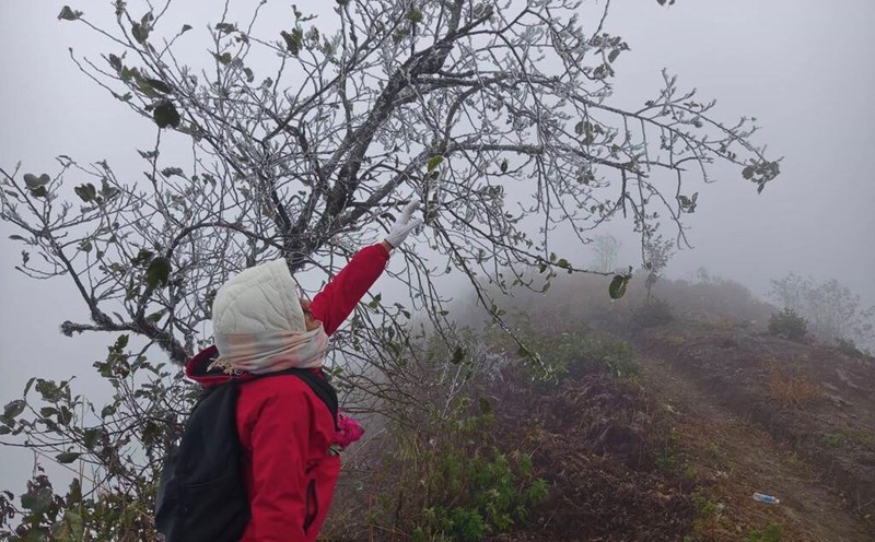 Lao Cai - On the top of Lao Than mountain (in Y Ty commune), ice appears densely in the cold weather due to the influence of cold air.