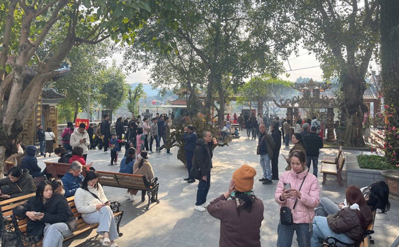 Lao Cai - In the early days of spring At Ty 2025, many tourists from all over the country flocked to Bao Ha temple to offer incense, flowers, and offerings to the national guardian god Hoang Bay to pray for luck.