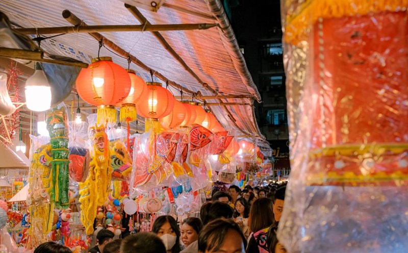 Luong Nhu Hoc lantern street in Ho Chi Minh City attracts many visitors nearby during the Mid-Autumn Festival.