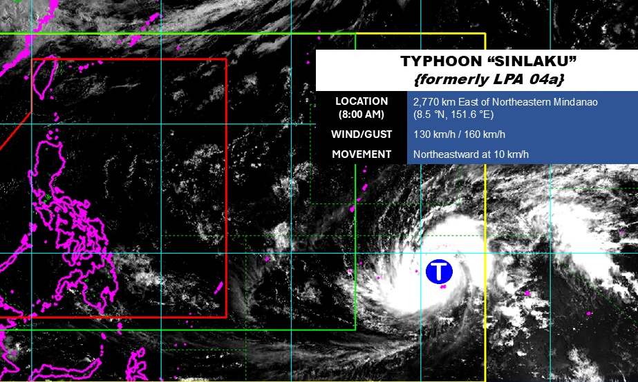 Typhoon Sinlaku near the East Sea forecast to become a super typhoon in the next 24 hours