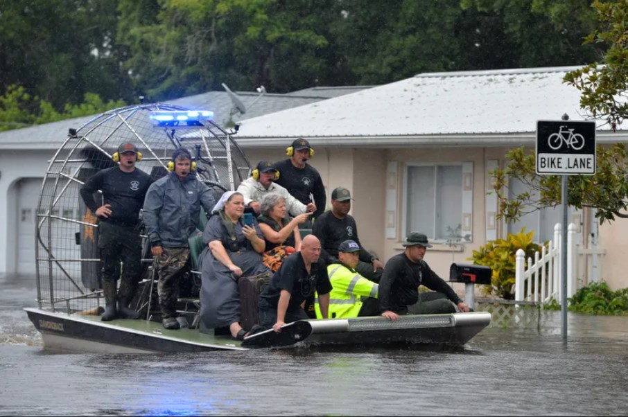 Since landing in Florida, consecutive floodwaters have flooded rivers, roads, causing people to be trapped in cars, houses, and boats. Recently, 3 children were rescued by a rescue team from the flooded water in Raleigh (North Carolina), including two 8-year-old and 11-year-old children who were found while clinging to a tree branch on the road.