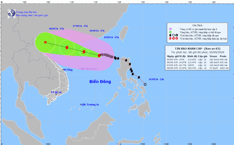 Thai Binh banned the sea from 5am on September 6. Hai Phong banned the sea from 11am on September 6, and started evacuating people from noon on September 6 (after 12pm on the same day).