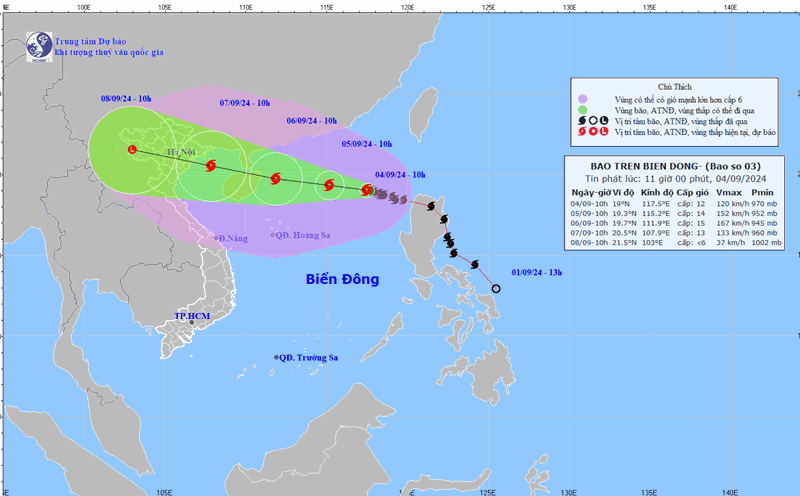 From the night of September 6 to the morning of September 7, the storm is expected to move into the Gulf of Tonkin and directly affect all coastal provinces in the North and North Central regions, from Quang Ninh to Ha Tinh.