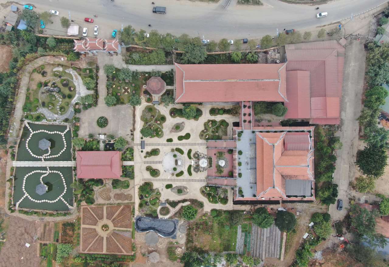 Accordingly, the project has a scale of over 6,538 m2 including: main temple, left-of-way house, right-of-way house, temporary house, temporary house, temporary house, temporary house, management board house and other auxiliary works.