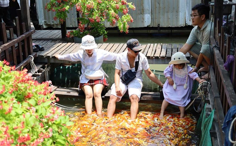 Many tourists enjoy floating on the Can Tho river, watching Cai Rang floating market traders trade and exchange local culture. "Coming to Can Tho for the third time, I feel satisfied that tourism activities here are gradually improving and will probably take my children there next time," said Ms. Ho Thi Thu Huong (Binh Duong province).