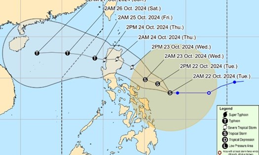 According to the National Hydrometeorological Center, at 7:00 p.m. on October 22, the center of storm Tra Mi was at about 14.5 degrees North latitude; 126.0 degrees East longitude, in the sea east of the central Philippines.