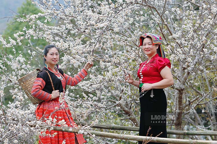 Meanwhile, in Phieng Ban village, Na Tau commune (about 30 km from the province center), the plum growing area of nearly 20 hectares is also blooming, attracting a large number of tourists. This is the place with the largest concentrated plum growing area in Dien Bien province.