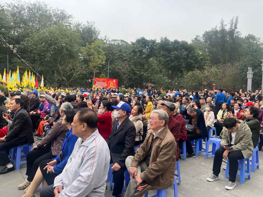 After the ceremony part, the festival part will include activities such as gymnastics performances, Chinese chess, human chess, martial arts performances... attracting a large number of people to watch. Many families bring young children to participate, both spring travel and learning history.