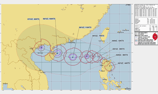 According to the latest warning from the US Joint Typhoon Warning Center (JTWC), at 4:00 a.m. on September 3 (Vietnam time), the center of storm Yagi was located about 198 nautical miles north of the capital Manila (Philippines), with the strongest wind near the center of the storm at about 65 km/h.