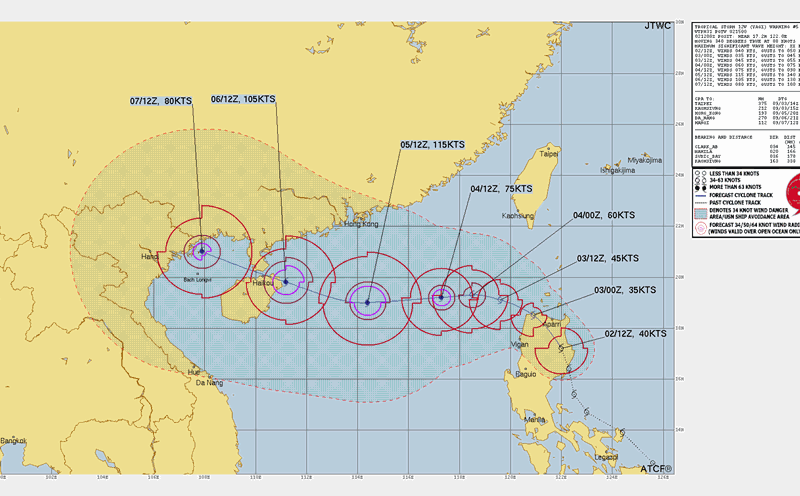 By September 5, the storm could strengthen into a typhoon with maximum winds of up to 205 km/h. After that, the storm is forecast to continue moving westward and is likely to directly impact the coastal provinces of Northern and North Central Vietnam around September 7-8.