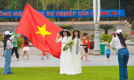 Ms. Nguyen Thi Hong Phuong (31 years old, Da Nang) and 2 other sisters went to Hanoi on the occasion of May 19. Hong Phuong said: "The moment the flag was raised, when the National Anthem rang out, I felt a feeling of overflow and patriotism".