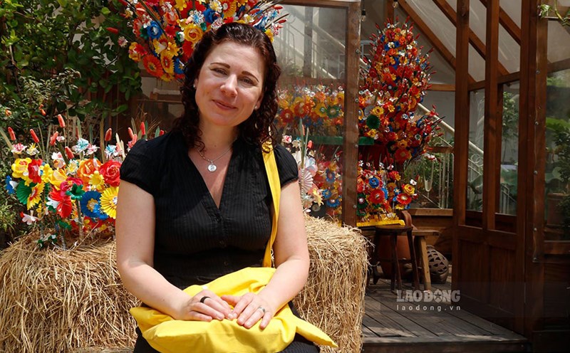 Có mặt tại một gian hàng ở phố ông đồ tại khu vực Nhà văn hóa Thanh Niên (Quận 1, TPHCM) để tham gia lễ hội Tết Việt năm 2024, cô gái người Đức Gudi Stolte bày tỏ sự ấn tượng với trang phục truyền thống của Việt Nam.