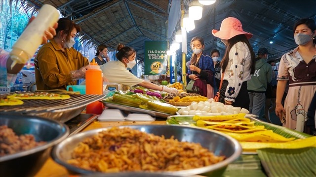The "Essence" space honors the values of Hanoi craft villages and cuisine with traditional craft performances and experiences of famous specialties such as lotus tea, Vong village cốm, Hanoi pho, Ngu Xa pho rolls, Thanh Tri banh cuon, Hang Duong ô mai.