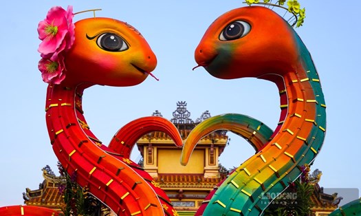 The mascot is placed on a pedestal about 1m high, surrounded by flowers, silver bars and oil flowers. The image of the beautifully winding mascot is likened by the people of Binh Duong to the "king of snakes".