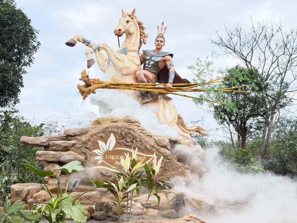 Giang Son Cam Tu" gathers 9 eternal horses galloping, of which 3 main horses represent Ho Chi Minh City, Vung Tau and Binh Duong with a monolithic shape. 6 small horses represent the aspects of the city shaped with a multi-layered structure, creating a layered effect, moving on the street of light.