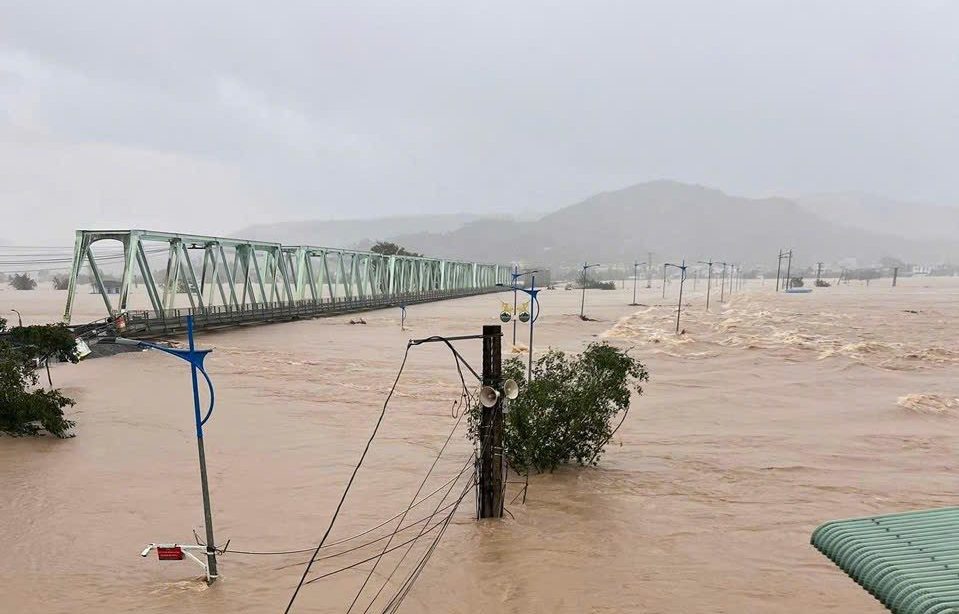 Heavy rain caused the Nha Trang - Cam Ranh railway to be heavily flooded, causing many trains to simultaneously announce stopping operations.